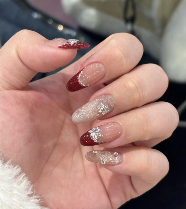 比起正紅色,帶透明感的櫻桃紅更輕盈,顏色像是自然透出的紅潤氣色,顯白又不厚重。非常適合第一次嘗試紅色系新年美甲的人,看起來有年味,卻不會太有距離感。
